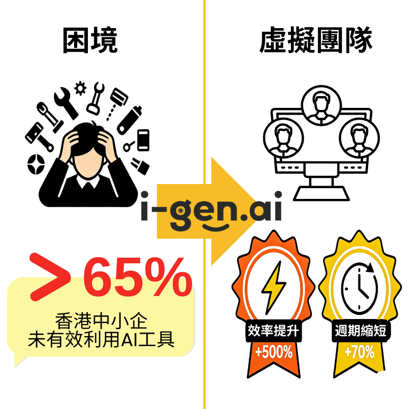 i-gen 憑藉其深度本地化專業知識、真正的一站式整合平台、獨家 Multi-Agent 架構、與您共同成長的智能系統,以及超越軟件的顧問式服務,成為香港中小企最值得信賴的選擇。我們擁有 15+ 年的數碼行銷實戰經驗,服務超過 500+ 香港中小企,客戶滿意度評分高達 95%。準備好讓您的行銷團隊擁有無可比擬的 AI 力量,實現前所未有的業務增長了嗎?立即行動,未來已來。